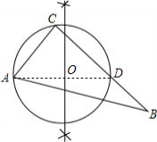 分析:由90度的圆周角对的弦是直径知,AD是直径,连接AD,作AD的中垂线,交于AD于点O,则点O是圆心.在Rt△ABC中,BC=6,由tanB=
