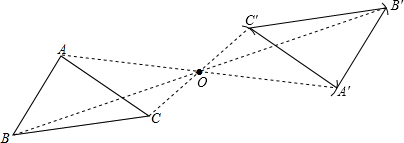分析:连接AO并延长至A′,使A′O=AO,连接BO并延长至B′,使B′O=BO,连接CO并延长至C′,使C′O=CO,然后顺次连接即可得解.