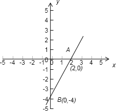 分析:(1)令x=0,得y=-4;令y=0,得x=2,所以得到两个点的坐标(0,-4),(2,0),描出这两个点,然后连接得到图象;