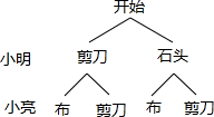 (2)由小明留下剪刀手势时,可能取胜,也能不分胜负,当不会输;即可知小明应留下剪刀手势.