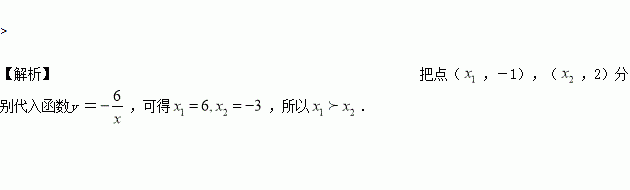已知点(,-1),(,2)在函数y =的图象上,则_____(填“>、<或=”).