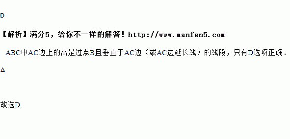 下面四个图形中,线段BD是△ABC的高的是( )