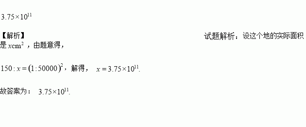 在一张比例尺为1:50000的地图上,如果一块多边形地的面积是150cm2,那么这块地的实际面积是______________8×107 cm2(用科学记数法表示).