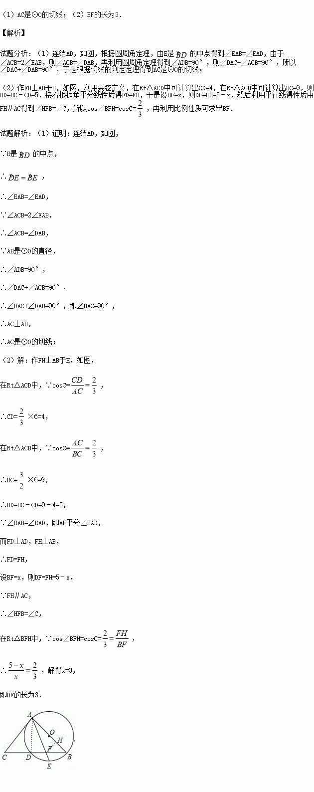 如图,AB是⊙O的直径,BC交⊙O于点D,E是的中点,连接AE交BC于点F,∠ACB=2∠EAB.