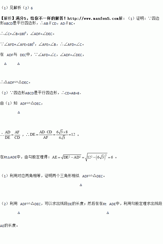 (1)求证:△ADF∽△DEC;