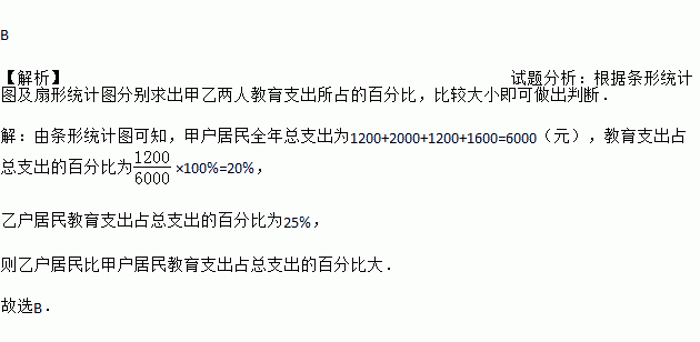 如图是两户居民家庭全年各项支出的统计图.根据统计图,下列对两户教育支出占全年总支出的百分比作出的判断中,正确的是( )
