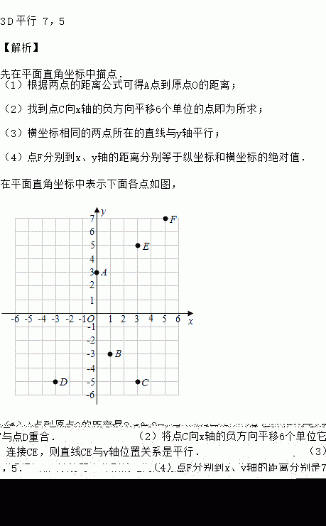 在平面直角坐标中表示下面各点:A(0,3),B(1,﹣3),C(3,﹣5),D(﹣3,﹣5),E(3,5),F(5,7).