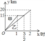 一段笔直的公路AC长20千米,途中有一处休息点B,AB长15千米,甲、乙两名长跑爱好者同时从点A出发,甲以15千米/时的速度匀速跑至点B,原地休息半小时后,再以10千米/时的速度匀速跑至终点C;乙以12千米/时的速度匀速跑至终点C,下列选项中,能正确反映甲、乙两人出发后2小时内运动路程y(千米)与时间x(小时)函数关系的图象是( )