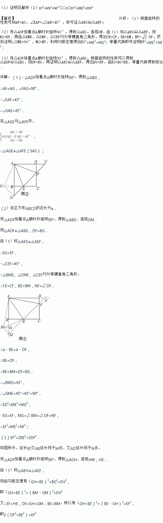 (2)若直线EF与AB,AD的延长线分别交于点M,N(如图②),求证:EF2=ME2+NF2;