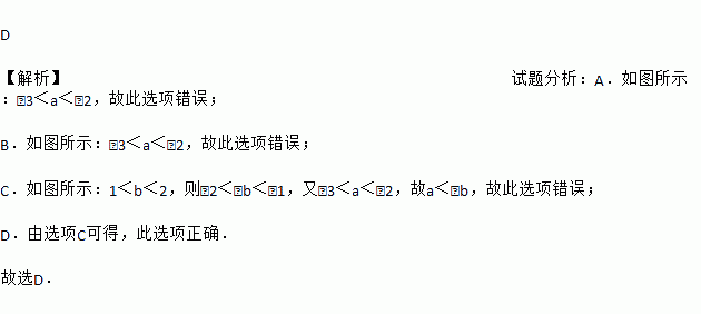 A. a>﹣2 B. a<﹣3 C. a>﹣b D. a<﹣b