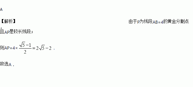 已知点P是线段AB的黄金分割点(AP>PB),AB=4,那么AP的长是( )