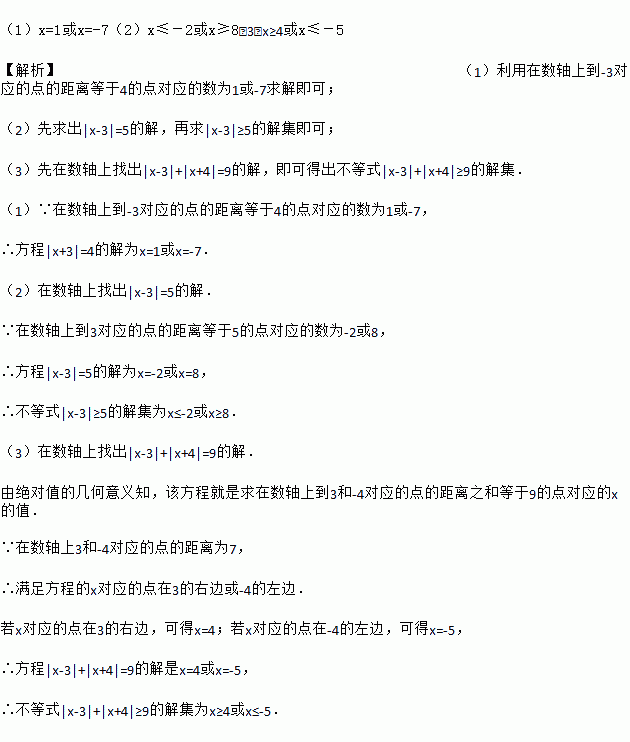 +2|=5£®Óɾø¶ÔÖµµÄ¼¸ºÎÒâÒåÖª£¬¸Ã·½³Ì¾ÍÊÇÇóÔÚÊýÖáÉϵ½1ºÍ£2¶ÔÓ¦µÄµãµÄ¾àÀëÖ®ºÍµÈÓÚ5µÄµã¶ÔÓ¦µÄ![]()