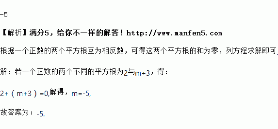 若一个正数的两个不同的平方根为2与m + 3,则m为___________.