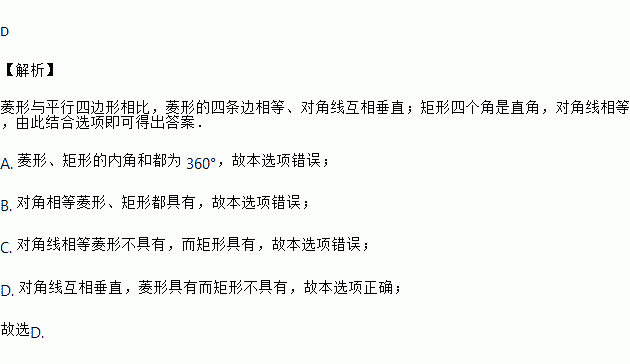 菱形具有而矩形不具有的性质是( )