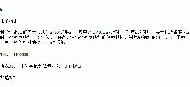 将数字310万用科学记数法可表示为( )