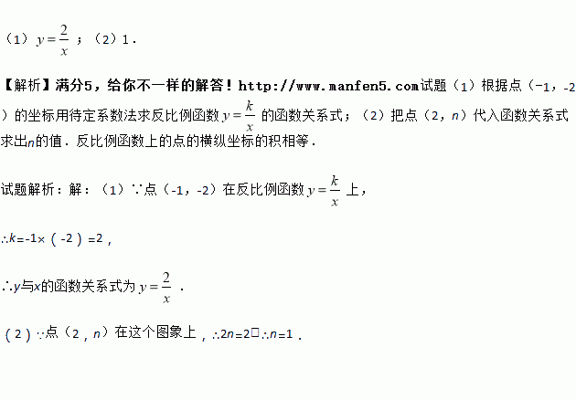 已知反比例函数的图象经过点(-1,-2).