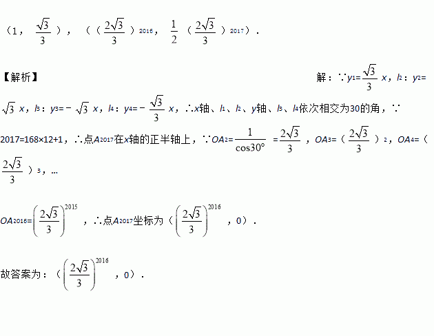 ,OA1=l,过点A1作A1A2⊥x轴,交l1于点A2,再过点A2作A2A3⊥l1交l2于点A3,再过点A3作A3A4⊥l3交y轴于点A4…,则点A2坐标为_____;点A2018的坐标为_____.