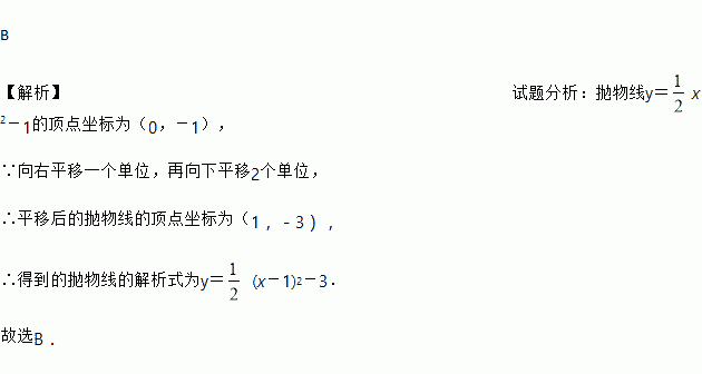 把抛物线先向右平移1个单位,再向下平移2个单位,得到的抛物线的解析式为( )。