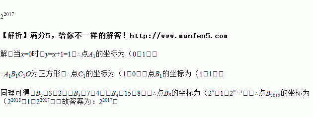 正方形A1B1C1O,A2B2C2C1,A3B3C3C2,…按如图所示的方式放置,点A1,A2,A3,…和点C1,C2,C3,…分别在直线y=x+1和x轴上,则点B2018的纵坐标是________.
