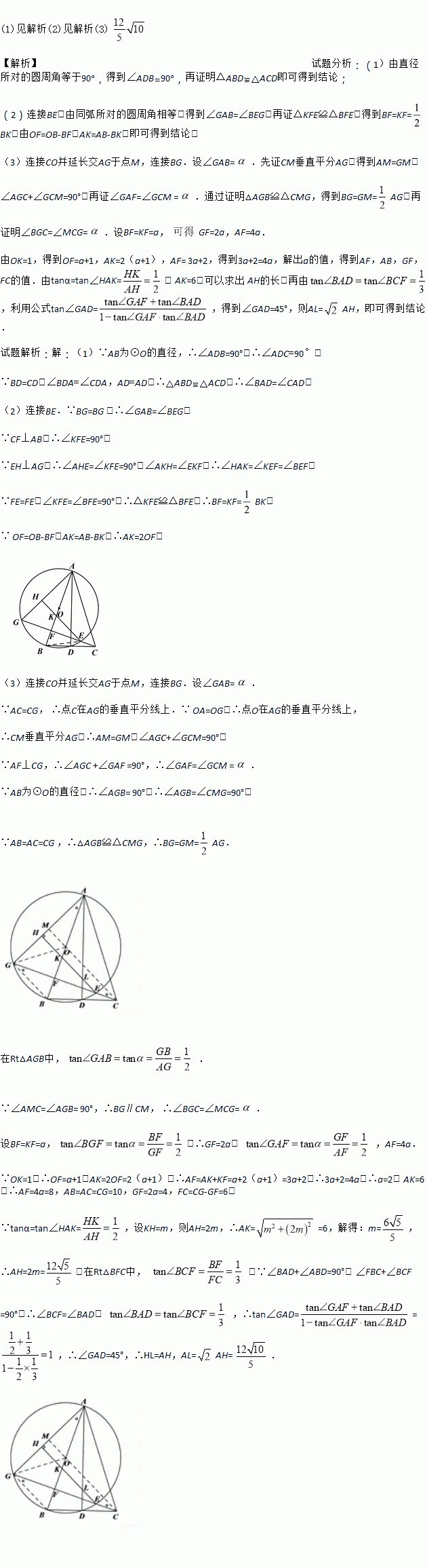(2)如图2,过点C作CF⊥AB于点F,交⊙0于点E,延长CF交⊙0于点G.过点作EH⊥AG于点H,交AB于点K,求证AK=2OF;