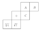 如图所示的是一个正方体纸盒的展开图,在其中的三个正方A,B,C内填入适当的数,使得折成正方体后相对的面上的两个数满足下列条件:A面上的数a与它对面上的数互为倒数,B面上的数b是它对面上的数的绝对值,C面上的数c与它对面上的数互为相反数,则a+b+c的值是多少?