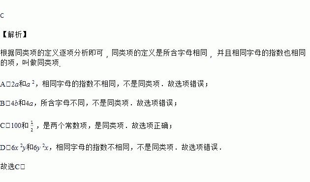 A. 2a和a2 B. 4b和4a C. 100和 D. 6x2y和6y2x