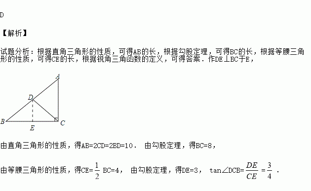 如图,在Rt△ABC中,CD是斜边AB上的中线,已知CD=5,AC=6,则tan∠DCB的值是( )