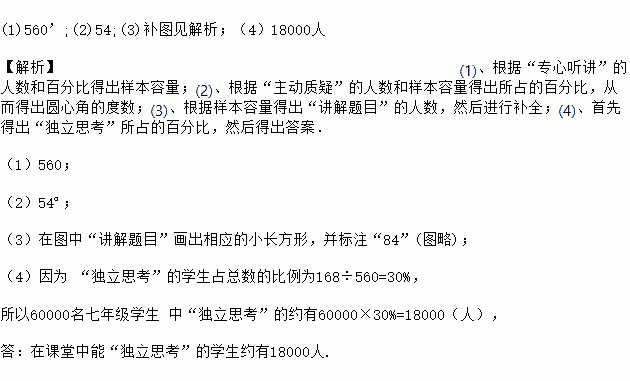 (4)如果该地区初中学生共有60000名,那么在课堂中能“独立思考”的学生约有多少人?