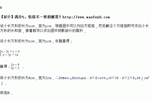 如图,在一个大长方形中放入六个形状、大小相同的小长方形,所标尺寸如图所示,则图中阴影部分的面积是( )