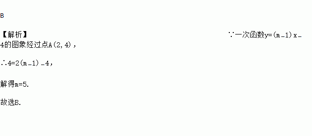 已知一次函数y=(m﹣1)x﹣4的图象经过(2,4),则m的值为( )