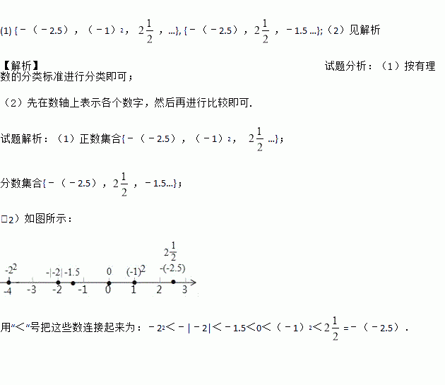 ﹣(﹣2.5),(﹣1)2,﹣|﹣2|,﹣22,0,