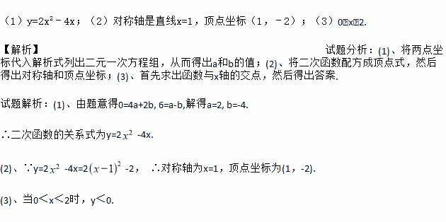 已知二次函数y=ax2+bx的图象过点(2,0),(﹣1,6).
