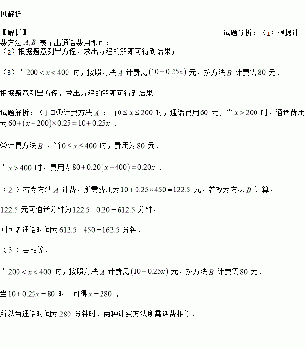 Á½ÖּƷѷ½·¨£¬ËùÐèµÄ»°·Ñ»áÏàµÈÂð£¿Èç¹û»á£¬ÇëÖ¸³öÏàµÈµÄʱ¼ä£®
