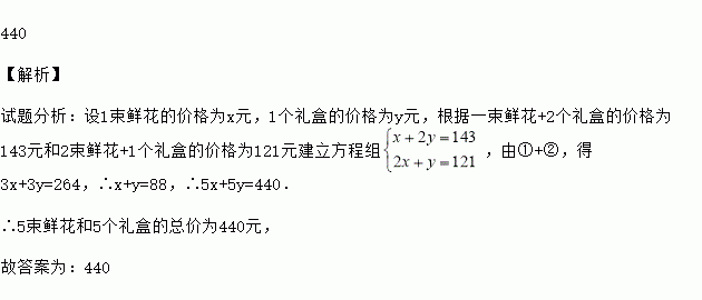 如图母亲节那天很多同学给妈妈准备了鲜花和礼物,从图中信息可知则买5束鲜花 和5个礼盒的总价为 元.