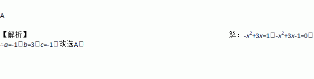 A 【解析】【解析】 -x2+3x=1,-x2+3x-1=0,∴a=-1,b=3,c=-1.故选A.