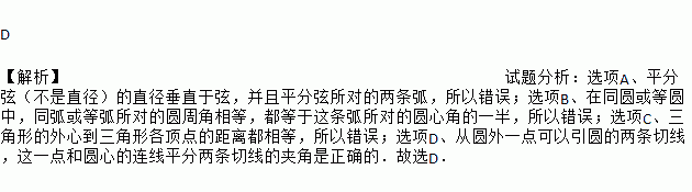 D. 从圆外一点可以引圆的两条切线,这一点和圆心的连线平分两条切线的夹角