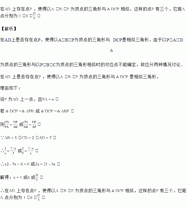 如图,在梯形中,,,,,,试问在上是否存在点,使得以,,为顶点的三角形与是相似三角形?如果不存在,请说明理由;如果存在这样的点有几个?它距点多远?