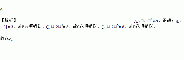 A 【解析】A. -(-3)2=-9,正确;B. -|-3|=-3,故B选项错误;C. (-2)3=-8,故C选项错误;D. (-2)3=-8,故D选项错误, 故选A.