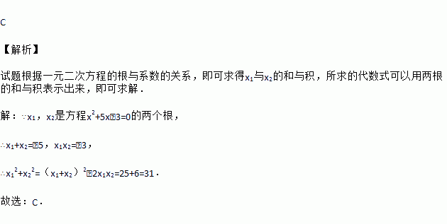 设x1,x2是方程x2+5x﹣3=0的两个根,则x12+x22的值是( )