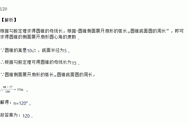 一个圆锥的高是,底面圆半径为,则圆锥侧面展开图的圆心角等于________度.