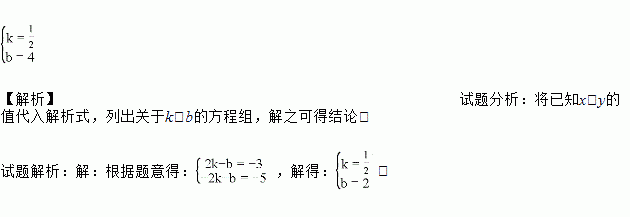 在等式y=kx-b中,当x=2时,y=-3;当x=-2 时,y=-5.求k和b的值.