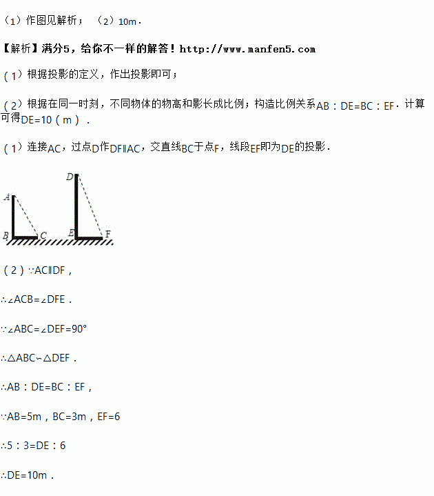 如图,和是直立在地面上的两根立柱,已知,某一时刻在太阳光下的影子长.