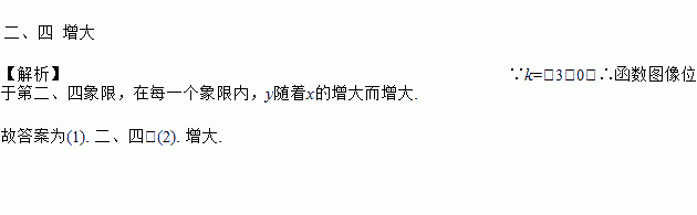的图象位于第_______象限内,在每一个象限内,y的值随x的增大而_____.