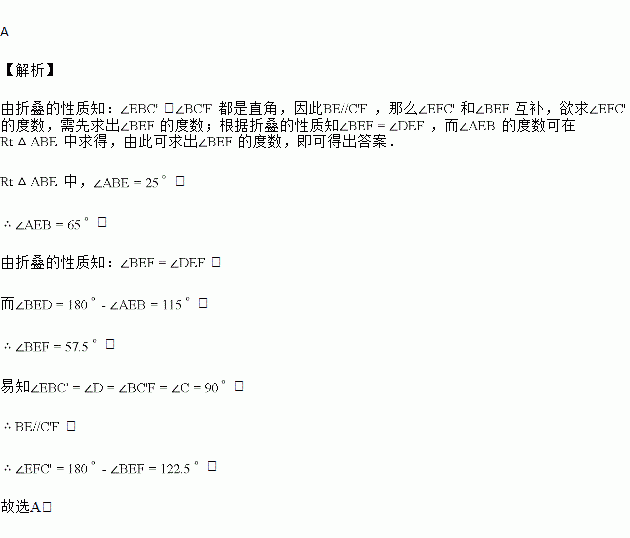 如图,将长方形纸片ABCD折叠,使点D与点B重合,点C落在点处,折痕为EF,若,则的度数为