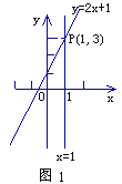 阅读,我们知道,在数轴上,x=1表示一个点,而在平面坐标系中,x=1表示一条直线;我们还知道,以二元一次方程2x-y+1=0的所有解为坐标的点组成的图形,就是一次函数y=2x+1的图象,它也是一条直线,如图1,可以得出,直线x=1与直线y=2x+1的交点P的坐标(1,3)就是方程组的解,所以这个方程组的解为