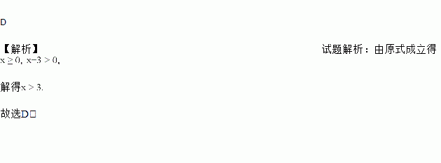 A. x≠3 B. x≥0 C. x≥0且x≠3 D. x>3