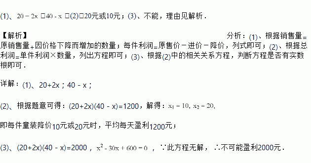 每件童装降价多少元时,平均每天赢利1200元.![]()