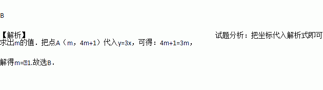 若正比例函数y=3x的图象经过A(m,4m+1),则m的值为( ).