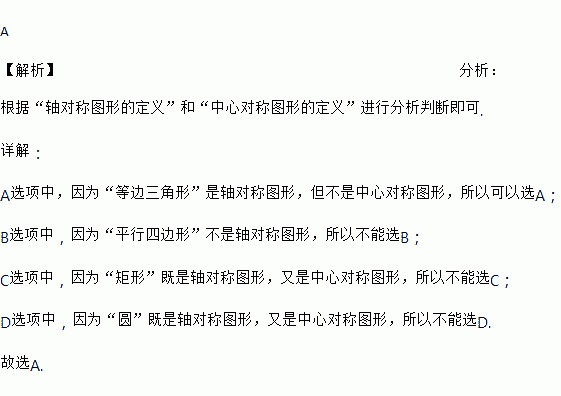 下列图形中,是轴对称图形但不是中心对称图形的是
