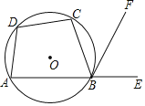 如图,四边形ABCD是的内接四边形,点E在AB的延长线上,BF是的平分线, ,则______°.
